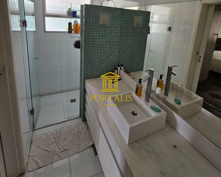 4 quartos amplos, todos com piso em tábua corrida e armários, sendo uma suíte com closet, bancada em granito, pia em cuba de apoio, teto com rebaixamento em gesso, iluminação planejada e box em blindex